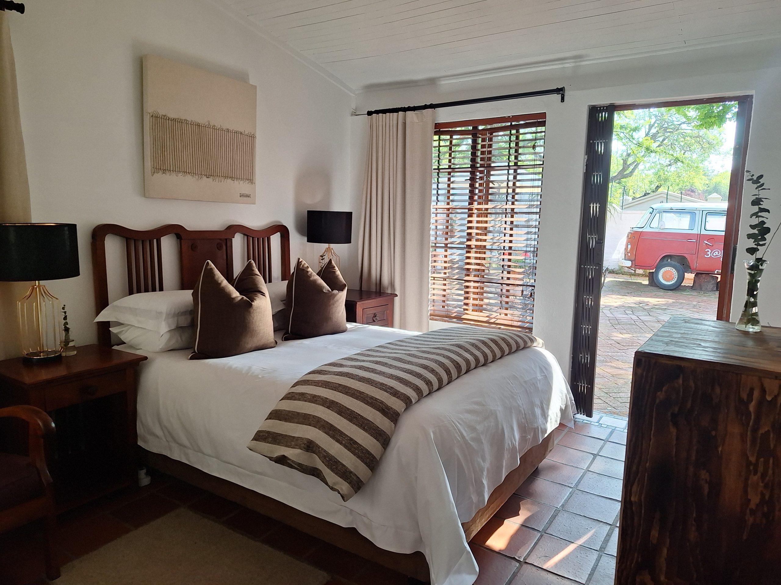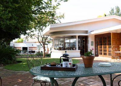 These rooms, with garden access, each contains a double bed or twin beds and an en-suite bathroom with either a bath or a shower. Room facilities include luxurious linen, antique furniture and a writing desk and chair, TV with OVHD decoder., free Wi-Fi Internet access and tea- and coffee-making facilities. Rates starting from R750.