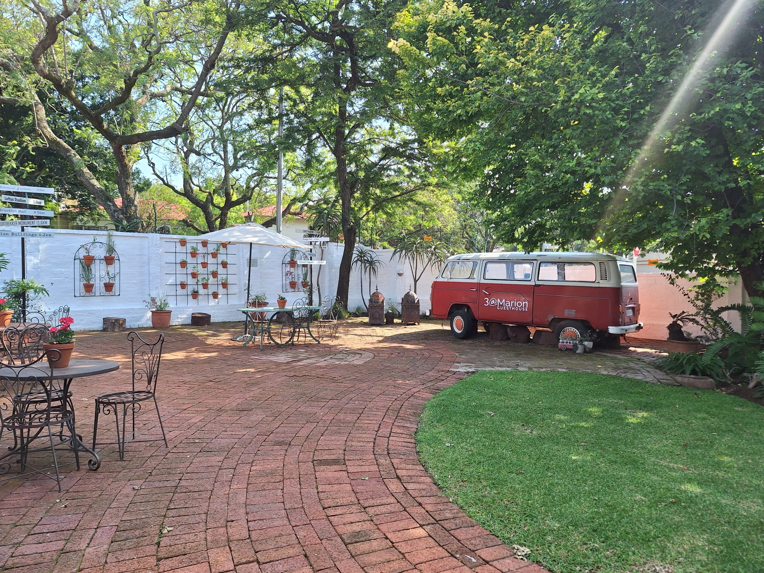 3@Marion Guesthouse has 8 rooms centred around a leafy garden. Each room has its own bathroom with shower and three rooms also have baths. Two rooms have fully equipped kitchens. We also offer: