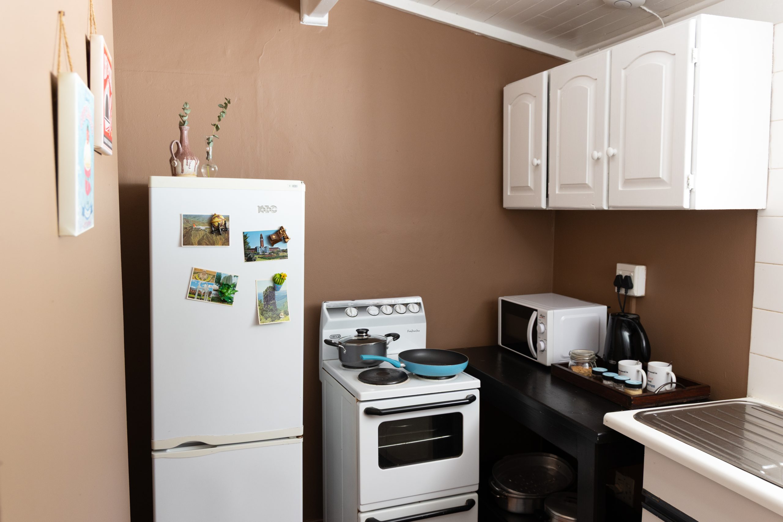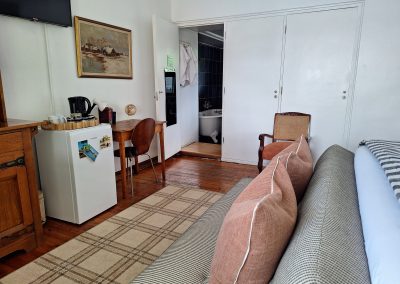 This lovely apartment contains a double bed and 1 Bunk bed, an en-suite bathroom with shower as well as a kitchenette that is equipped with a fridge, stove and microwave. Room facilities include luxurious linen, antique furniture and a writing desk and chair, TV with OVHD decoder., free Wi-Fi Internet access and tea- and coffee-making facilities. Rates starting from R750.